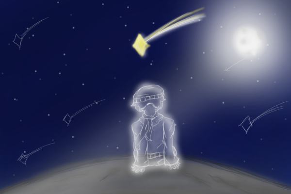 "My artwork represents a boy from my favourite show called, "One Piece." In this painting he's looking outside from a huge pirate ship that he owns, called "The Thousand Sunny's." I chose this character because he represents hope, joy and freedom; a thought that would go perfectly with the Holiday Season." –Mannat