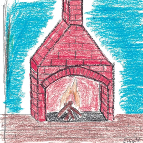 "J'ai choisi de faire ce dessin de cette manière car pour moi c'est comme ça que j'imagine noel. Il y a trois mots en anglais qui sont la famille, l'espoir et l'amour. Pour moi, ces trois petit mots représentent beaucoup. En premier, la famille car noël est un temps de partage, ensuite l'espoir car sans elle nous ne serions pas autant heureux et pour finir l'amour car sans elle nous ne pourrions plus vivre. J'ai dessiné un foyer avec en haut des bas de noël dans le fond car sans ca pour moi ce n'est pas noël et pareillement sans des décorations de noël alors c'est pour ca que j'ai dessiné les boules de noel." –Mia